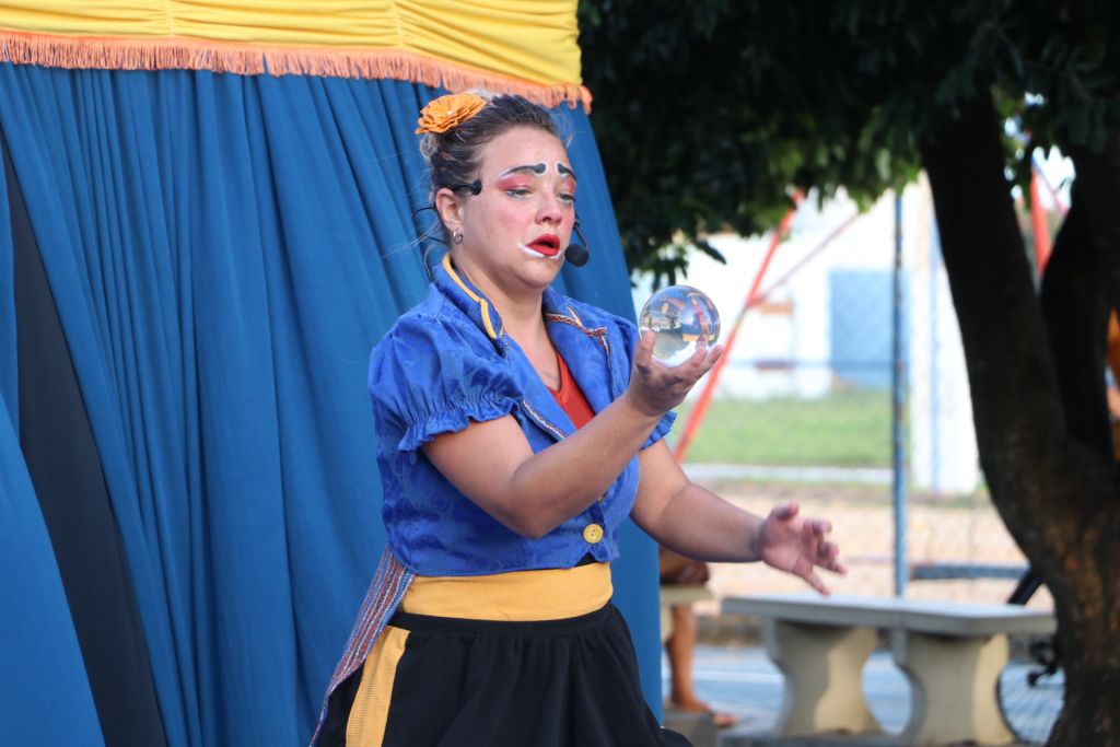 Apresentação da Palhaça Vanilla leva magia, risos e emoção à Praça do Parquinho, celebrando a cultura com apoio de importantes parcerias