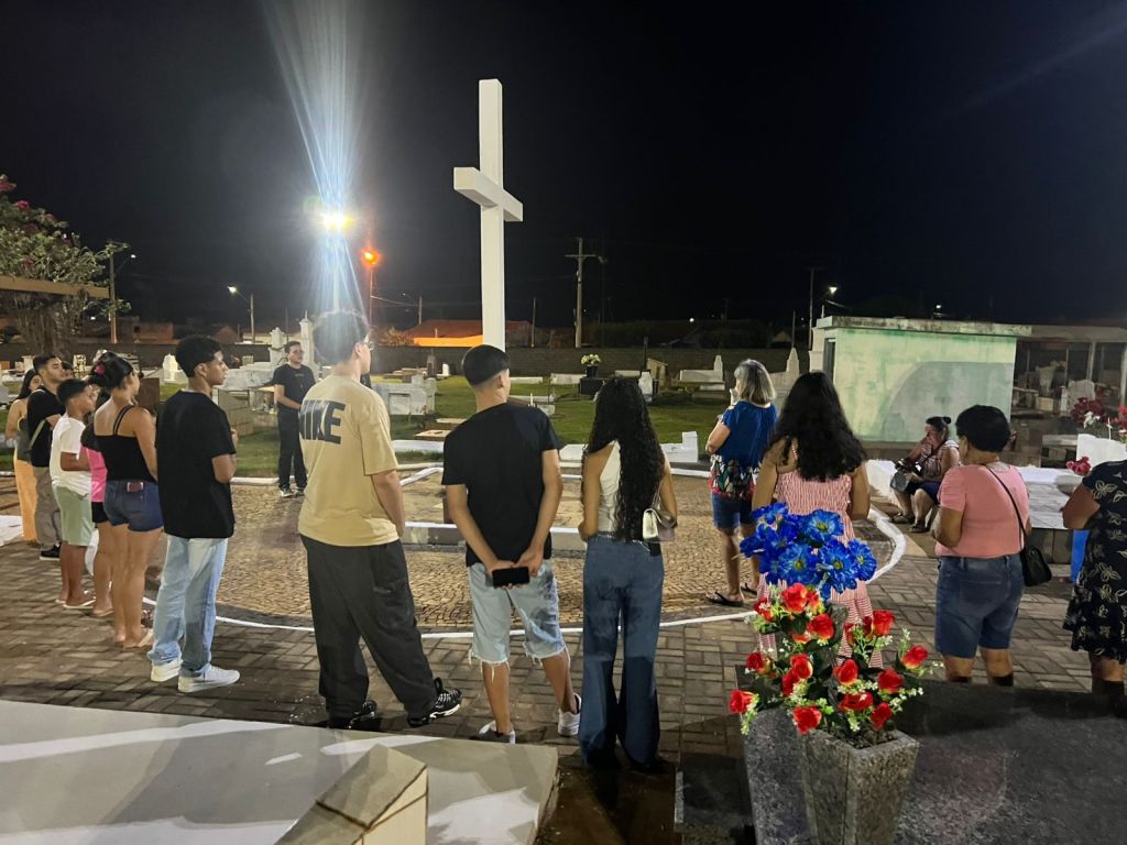 O ponto central da noite foi a reza do Santo Terço no Cruzeiro, reunindo a comunidade e os jovens em oração pelas almas do purgatório. O momento foi marcado por devoção, respeito e a continuidade de uma tradição que expressa amor, memória e fé cristã.