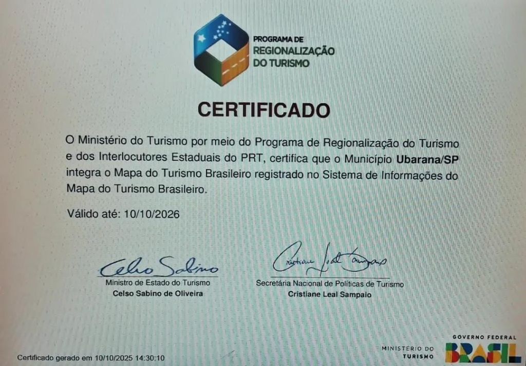 Estar no Mapa do turismo Brasileiro representa uma grande conquista para Ubarana-SP, reconhecida como Município de Interesse Turístico (MIT). Essa inclusão fortalece o turismo local, amplia a visibilidade do município em âmbito estadual e nacional e possibilita o acesso a programas, investimentos e políticas públicas voltadas ao desenvolvimento do setor. Além disso, impulsiona a economia local, gera oportunidades, valoriza os atrativos naturais e culturais e contribui para um crescimento turístico organizado, sustentável e planejado, beneficiando toda a população ubaranense.