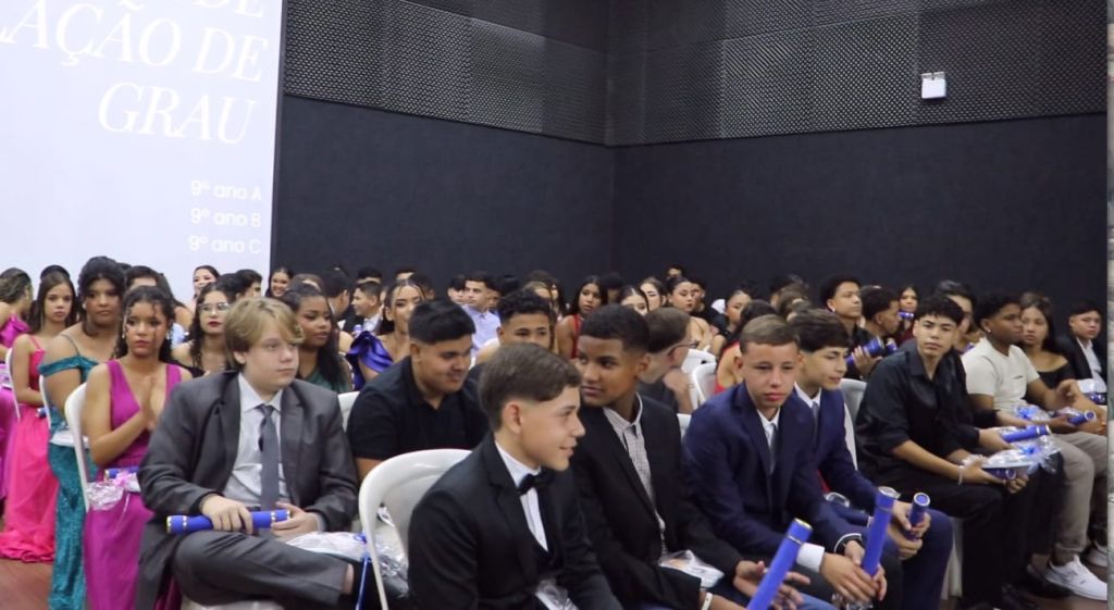 No dia 12/12, aconteceu a formatura dos 9º anos da Escola Municipal Professor João Dionísio. O evento contou com a entrega dos diplomas aos alunos, marcando a conclusão de uma importante etapa escolar.