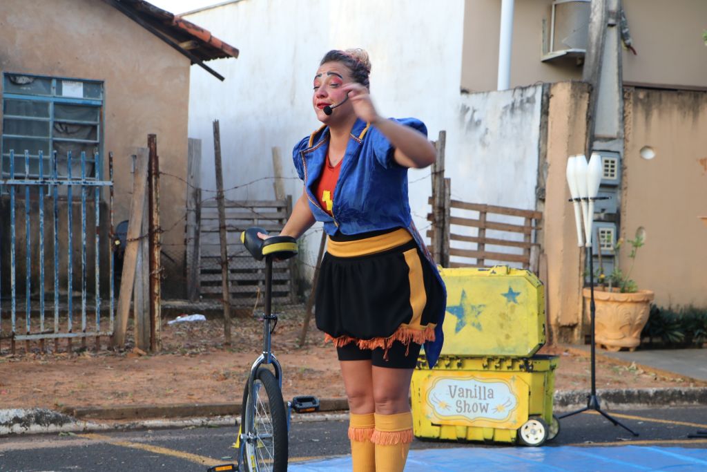 Apresentação da Palhaça Vanilla leva magia, risos e emoção à Praça do Parquinho, celebrando a cultura com apoio de importantes parcerias